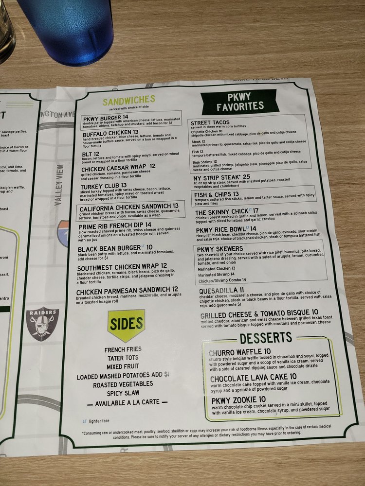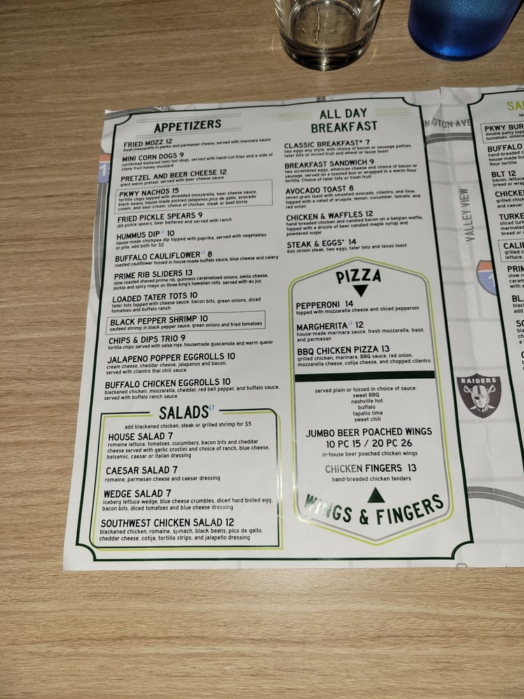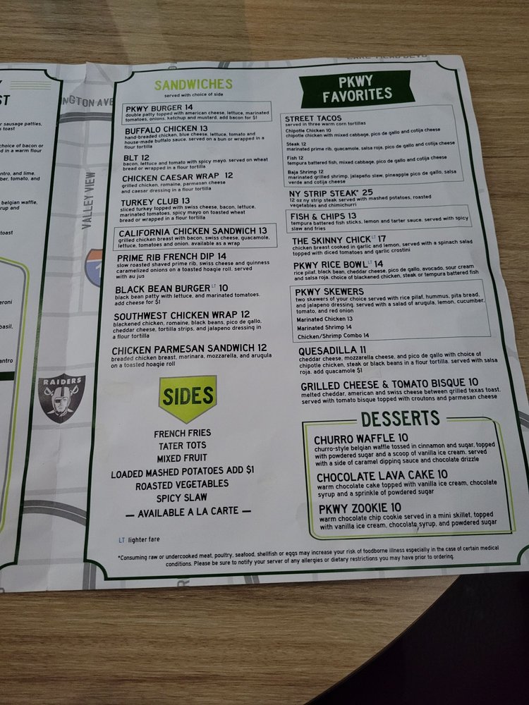 Welcome to PKWY Tavern Decatur, a vibrant sports bar situated at 4930 W Flamingo Rd, Las Vegas, NV. This venue is perfect for breakfast, brunch, or casual dining, offering a diverse menu that showcases American favorites. The Pkwy Favorites include delicious options like classic breakfast plates, rosemary chicken, and fish & chips, providing something for every palate.